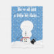 Winter scene of an upside down snowman on a mound of snow with text that says, "We're All Just A Little Bit Flaky..."