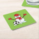 Funny Snowman with Soccer Ball Square Paper Coaster