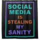 “Social Media is Stealing My Sanity”. See my store for more items with this design.