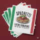 Mangiamo! Make that Italian family reunion memorable and a riot with these spaghetti eating champions napkins, which feature the colors of the Italian flag and an image of a delicious heaping plate of my favorite Italian pasta, topped with tomato sauce, meatballs, and basil leaves! Personalize with surname or event name!