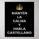 Funny Spanish text slogan based on the popular "keep calm" posters with a gold coloured crown and plain black background. Visit the VINTAGE PRINTS STORE for thousands of vintage gift ideas Easily customise the colour of the background or text from a range of over 200 colours.