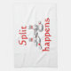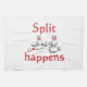 This towel has a funny bowling saying of split happens with pins laying around and a four pins making a split.