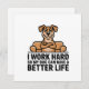 A modern minimalist dog illustration featuring a smug, relaxed dog sitting confidently on a couch, paired with the humorous phrase “I Work Hard So My Dog Can Have A Better Life.” The clean cartoon style, balanced layout, and bold typography create a strong visual impact while keeping the message easy to read. A highly relatable design for proud dog owners who love playful pet humor and simple, statement-driven artwork.