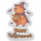 Add spooky-cute charm anywhere with this “Cappy Halloween” capybara sticker! Featuring a smiling cartoon capybara dressed as a witch/wizard with a pumpkin candy bucket and bats, it’s perfect for laptops, notebooks, water bottles, and more. A funny Halloween design for capybara lovers and fans of animal humour. ✨ Pair this sticker with the matching Cappy Halloween mug, tote bag, or t-shirt for a festive gift bundle!