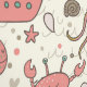 Funny summer seamless pattern with ships, jellyfish, seahorse, lighthouse, seagull, octopus, crab, whale. The sea vector texture. Travel vacation background. © and ® Bigstock® - All Rights Reserved.