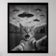 Funny Surprised Ed Cat Selfie With Alien Ufo Cat U Poster