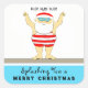 Funny swimming themed Christmas holiday gift stickers, party favour labels and envelope seals featuring santa swimmer