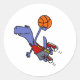 Funny T-rex Dinosaur Playing Basketball Classic Round Sticker