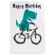 Hilarious cute fun unique blue T-rex dinosaur riding bicycle design is terrific for bicycle lovers and cyclists and dinosaur lovers and bike riders.