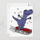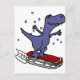Funny T-rex Dinosaur Sledding Cartoon Postcard