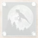 Funny T-Rex Flying on Bicycle with Full Moon Glass Coaster