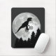 Funny T-Rex Flying on Bicycle with Full Moon Mouse Pad