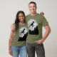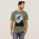 A funny pop culture parody reminiscent of the 80's, this design features a T-Rex flying on his bicycle, silhouetted against a bright full moon in the background. It makes a great choice for your t-shirt collection and a good conversation starter.