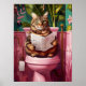 Funny Tabby Cat Bathroom Print Quirky Cat Toilet