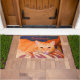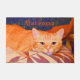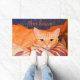 Funny, cute bright orange tabby cat welcome mat. Digitally painted photograph. Bright orange cat with orange, brown eyes. Mischievous looking cat laying down. Copper, ginger colours. Cute personalised doormat for cat lovers. Customise your name. Change font style, size, colour or remove if desired. Look for matching items in my store collection. Image copyright Marg Seregelyi Photography.