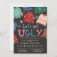 Funny tacky ugly sweater grey corporate Christmas invitation. ALL the illustrations colours are editable! Get creative with these fun ugly Christmas sweater, featuring an ugly hand lettered typography. On editable chalk dark grey.
