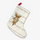 this vintage creamy ivory white coloured Christmas Stocking depicts a seemingly very unpleased cartoon kitty who seems to have gotten into xmas stringer lights, that are now strung up on display. Great addition to any holiday wardrobe
