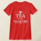 Funny design for Valentines Day or any day! Tea is my Valentine with scrolls, a tea cup, and hearts. White text for dark shirts.