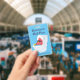 Funny school bathroom hall pass done in sky blue with cartoon graphics of a bird bathing in a toilet. Personalise the custom text to read what you want.