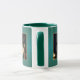 Personalised photo mug featuring 3 art deco style women (or your own photos) framed by a teal green design. With your custom funny (or other) texts. Lovely as a gift for a girlfriend or other lady you love.