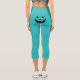 Funny teal Jack o lantern pumpkin face Halloween Capri Leggings