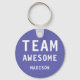Funny Team Awesome Purple Personalised Name Keychain features the text "Team Awesome" with your personalised name below on a purple background. Personalise by editing the text in the text box provided. Designed for you by ©Evco Studio www.zazzle.com/store/evcostudio