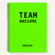 Funny Team Personalised Notes Office Meeting Notebook features the text "Team Awesome" with your personalised name below on a neon green background. Personalise by editing the text in the text box provided. Designed for you by ©Evco Studio www.zazzle.com/store/evcostudio