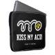Funny tennis player gifts - Kiss my ace 15 inch laptop sleeve. Personalised computer accessories for men women and kids. Create one for boy, girl, son, dad, mum, daughter, sister, coach, trainer, friends, team mate etc. Yellow tennis ball drawing with humourous quote. Tennis humour for him or her.