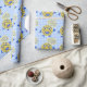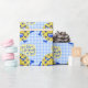 This humourous wrapping paper is perfect for Thanksgiving or any occasion that includes pie for dessert. It shows an angry cartoon blueberry pie asking, "You want a piece of me?" The background is light blue gingham. The design tiles across the wrapping paper.