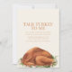 Join us for a festive Thanksgiving celebration filled with gratitude, delicious food, and wonderful company! With a charming watercolor turkey on a platter gracing the bottom of our invitation, we warmly invite you to an unforgettable gathering. Titled "Talk Turkey to Me," this special occasion promises laughter, great conversations, and cherished moments. Details of the party are elegantly presented above the delightful artwork.