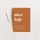 If you love neutrals, this simple style invitation is right for you. The invitation features an elegant design, with a soft, burnt orange background. In the centre, the party details are beautifully scripted in a white text exuding an air of sophistication. The funny text "nice legs" will give your guests a chuckle before they even show up. Welcome guests to your Thanksgiving dinner party in style. Background colour and text is editable.