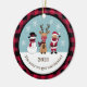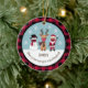 This funny and cute Christmas ornament has a snowman, reindeer and Santa Claus wearing masks. There is a buffalo plaid pattern and lovely red, white, black, and tan colours. It says "The year we got vaccinated." You can customise it with the year. The back has a buffalo plaid pattern with snowflakes.