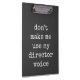 This fun clipboard features a funny theatre lovers humour quote for directors - Don't Make Me Use My Director Voice - in simple retro black and white typewriter typography. The word director can be customised. Great gift idea!