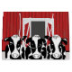 A graphic design by artist/designer Charmaine Paulson of three funny cows on a gift bag.