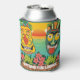 Funny Tiki Faces with tropical sunset and name Can Cooler
