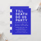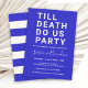 Host a couple's shower for the bride and groom with this simple, bold and fun "TILL DEATH DO US PARTY" invitation. The text template allows you to personalise all of the text with your desired event details. This invitation is available in a variety of colours - shown here in white text with a brilliant cobalt blue background and matching rugby stripes pattern on the back. Lots of matching party products are available to coordinate the theme.