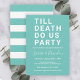 Host a couple's shower for the bride and groom with this simple, bold and fun "TILL DEATH DO US PARTY" invitation. The text template allows you to personalise all of the text with your desired event details. This invitation is available in a variety of colours - shown here in white text with an aqua teal background and matching rugby stripes pattern on the back. Lots of matching party products are available to coordinate the theme.