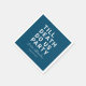 Set the tone for your wedding reception, engagement party, or wedding anniversary with this funny paper napkin. This design features simple bold text "TILL DEATH DO US PARTY". The text template allows you to personalise this design with the bride and groom's names and wedding date. You can also change the text to other wording if you desire. Available in a variety of colours - shown her in white text with a navy blue background.