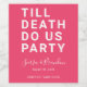 Set the tone for your wedding reception, engagement party, or wedding anniversary with this funny wine label. This design features simple bold text "TILL DEATH DO US PARTY". The text template allows you to personalise this design with the bride and groom's names and wedding date. You can also change the text to other wording if you desire. Available in a variety of colours - shown her in white text with hot pink - fuchsia background.