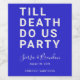 Set the tone for your wedding reception, engagement party, or wedding anniversary with this funny wine label. This design features simple bold text "TILL DEATH DO US PARTY". The text template allows you to personalise this design with the bride and groom's names and wedding date. You can also change the text to other wording if you desire. Available in a variety of colours - shown here in white text with a brilliant cobalt blue background.