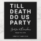 Set the tone for your wedding reception, engagement party, or wedding anniversary with this funny wine label. This design features simple bold text "TILL DEATH DO US PARTY". The text template allows you to personalise this design with the bride and groom's names and wedding date. You can also change the text to other wording if you desire. Available in a variety of colours - shown her in white text with black background.