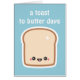 Cute toast with happy face. You can keep the funny pun "a toast to butter days" or replace it with your own saying.