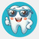 Blue funny tooth stickers with a thumbs up and the tooth sporting sunglasses.