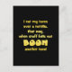 Yellow text conveys a humourous taco-related message on a solid black background. The emphasis on "BOOM" highlights the clever idea of creating an extra taco when fillings spill.