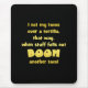 Yellow text conveys a humourous taco-related message on a solid black background. The emphasis on "BOOM" highlights the clever idea of creating an extra taco when fillings spill.