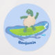 This funny tortoise is surfing the waves pop a bright green surfboard. Reptile fun in cartoon style!