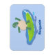 This funny tortoise is surfing the waves pop a bright green surfboard. Reptile fun in cartoon style!
