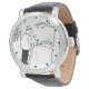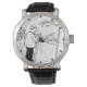 Tree surgeon gift watch. A tree surgeon is cutting the branch off a tree, with his ladder on the wrong side. Funny cartoon illustration of a tree feller.