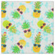 Funny, tropical Christmas pineapples wearing sunglasses and festively decorated with Christmas lights, ornaments and candy canes. This pattern has a pastel blue and white background with Hawaiian hibiscus flowers. This custom fabric is a fun, tropical accent for Christmas crafts. Perfect for any pineapple lover!