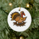 Funny Turkey Sitting on Football in Nest Ceramic Tree Decoration